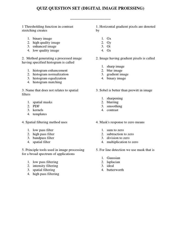 . Image Processing Quiz for Android - APK Download Aktu MCQ questions of image processing|complete unit2MCQ questions|Aktu image processing model paper - YouTube Digital Image Processing MCQs - Sanfoundry